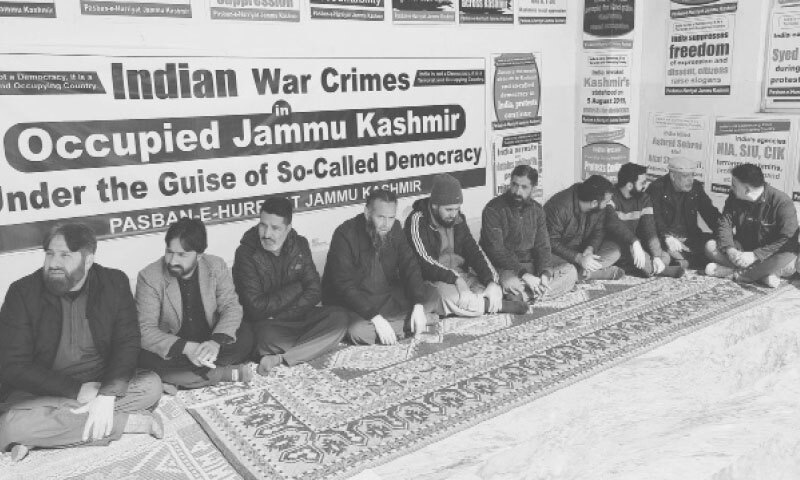 MUZAFFARABAD: Kashmiri activists staged a symbolic sit-in to condemn the unrelenting reign of terror in India-held Jammu and Kashmir on Sunday, a day ahead of India’s so-called Republic Day.