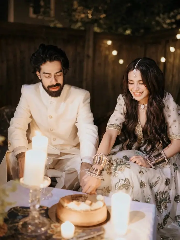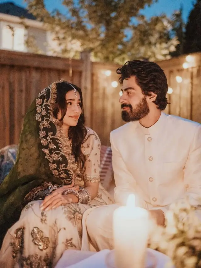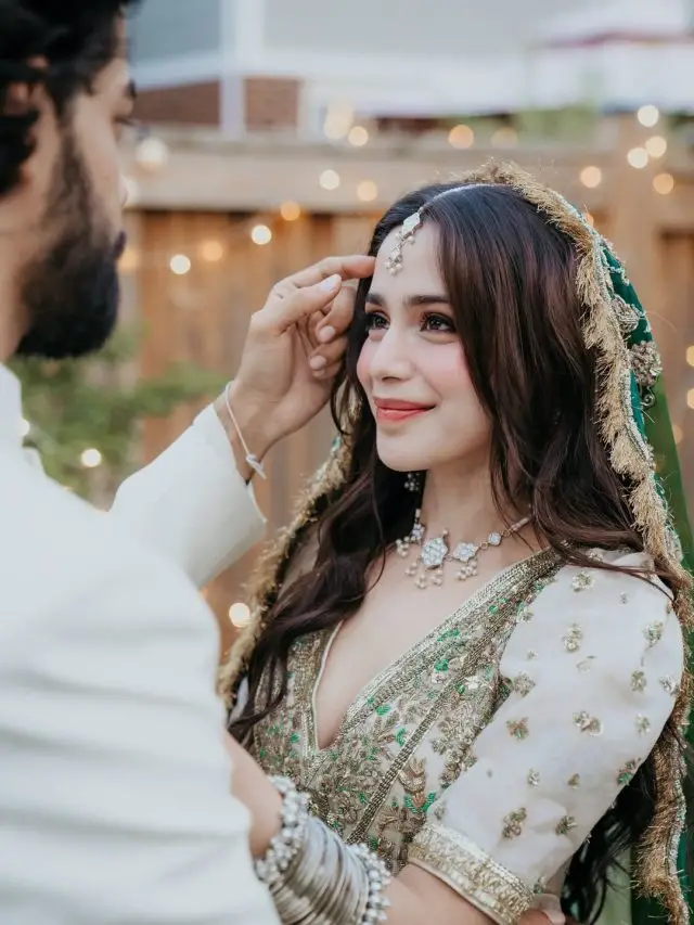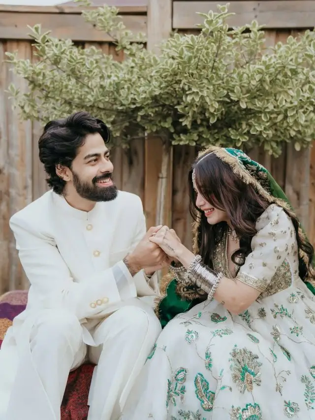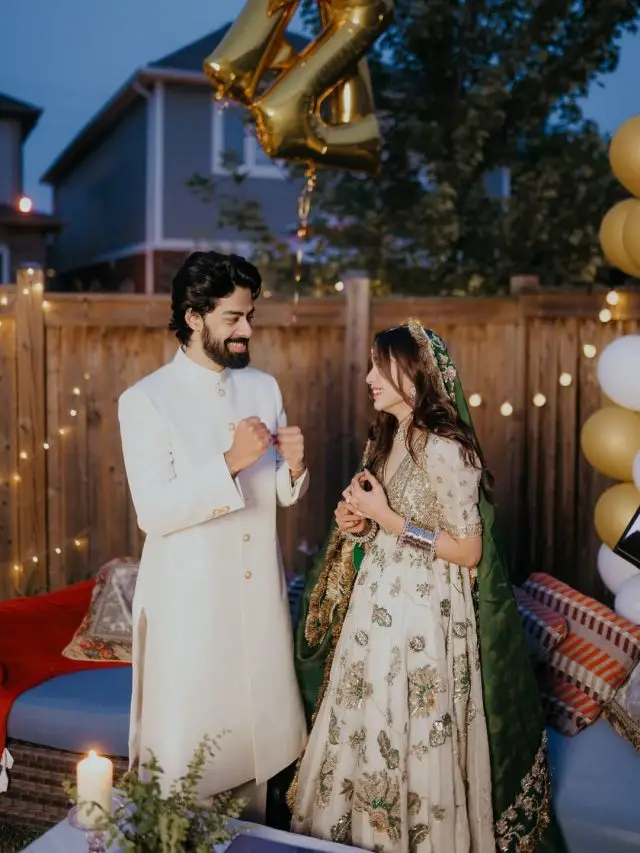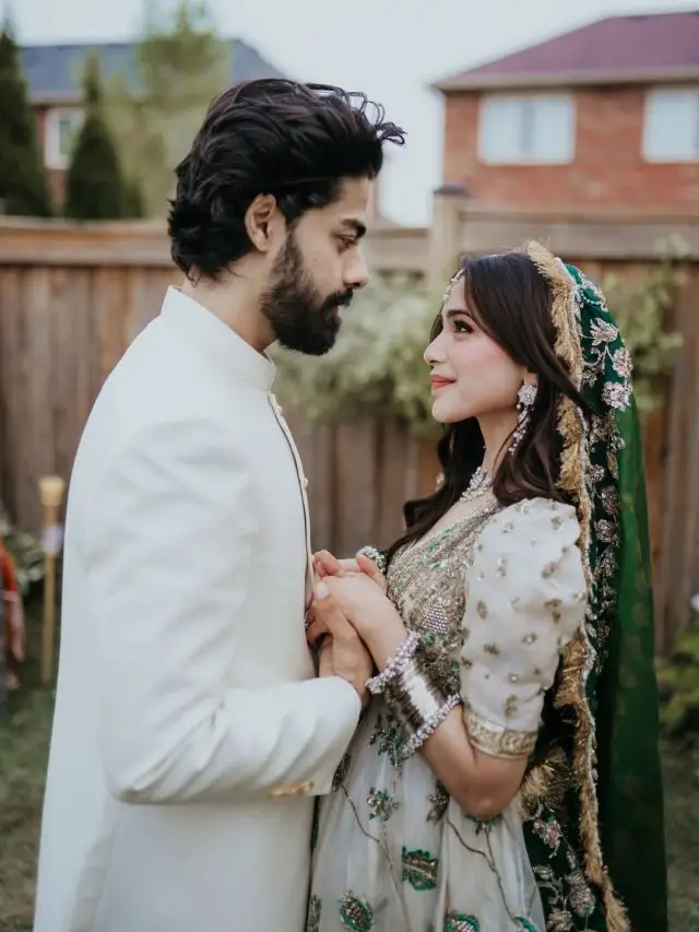 Now, they’ve taken the big step and gotten married in a private Nikkah ceremony held in Canada. Aima looked stunning in a gold and green lehenga, with soft makeup and minimal jewelry. Zain matched the elegant vibe with a classic ivory sherwani.