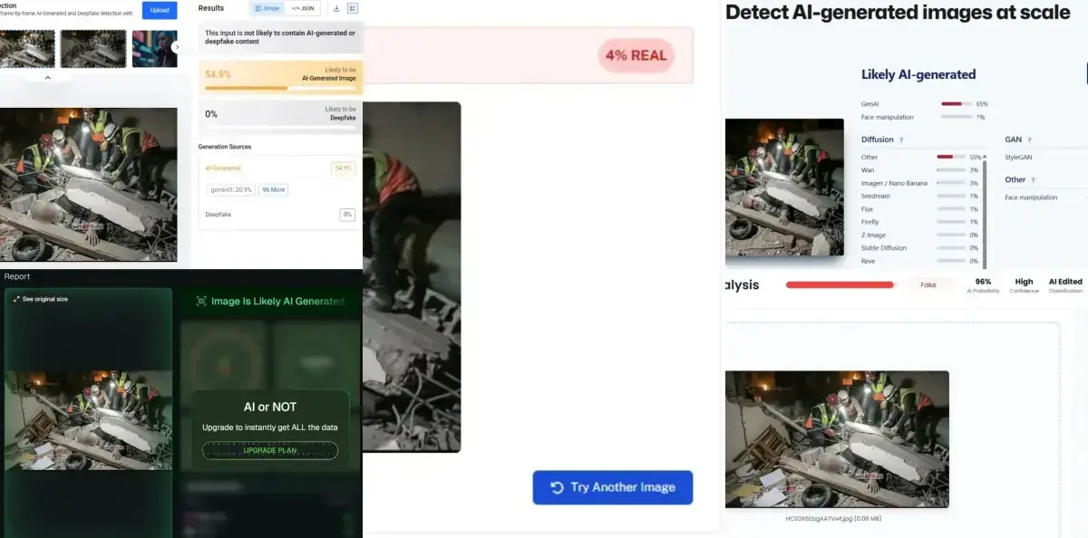 A forensic analysis of the image through AI-detection tools showed that multiple tools, such as Undetectable.ai, AI or Not, Sightengine, Hive Moderation, and Truth Scan, flagged it as AI-generated.