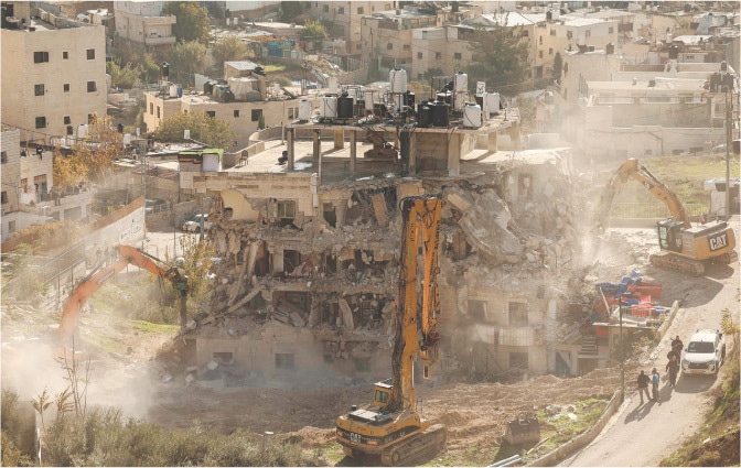 JERUSALEM: Israeli bulldozers tore through a four-storey building in east Jerusalem on Monday, leaving scores of Palestinian residents unsure where to go after their doors were broken down in the middle of the night by authorities enforcing hasty evictions.