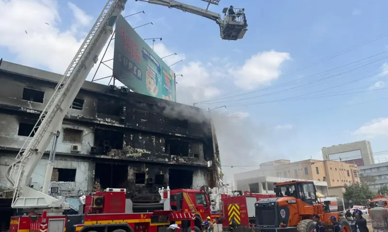 Among them was Muhammad Khizer Khan, the head of the foundation’s Karachi division and one of the first to arrive at Gul Plaza that night. “On reaching the site, we got our fire trucks working,” he recounted to Dawn.