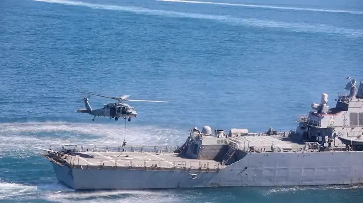 The original video is from a US naval exercise during its 250th anniversary celebrations in October 2025 and is unrelated to the current conflict.
