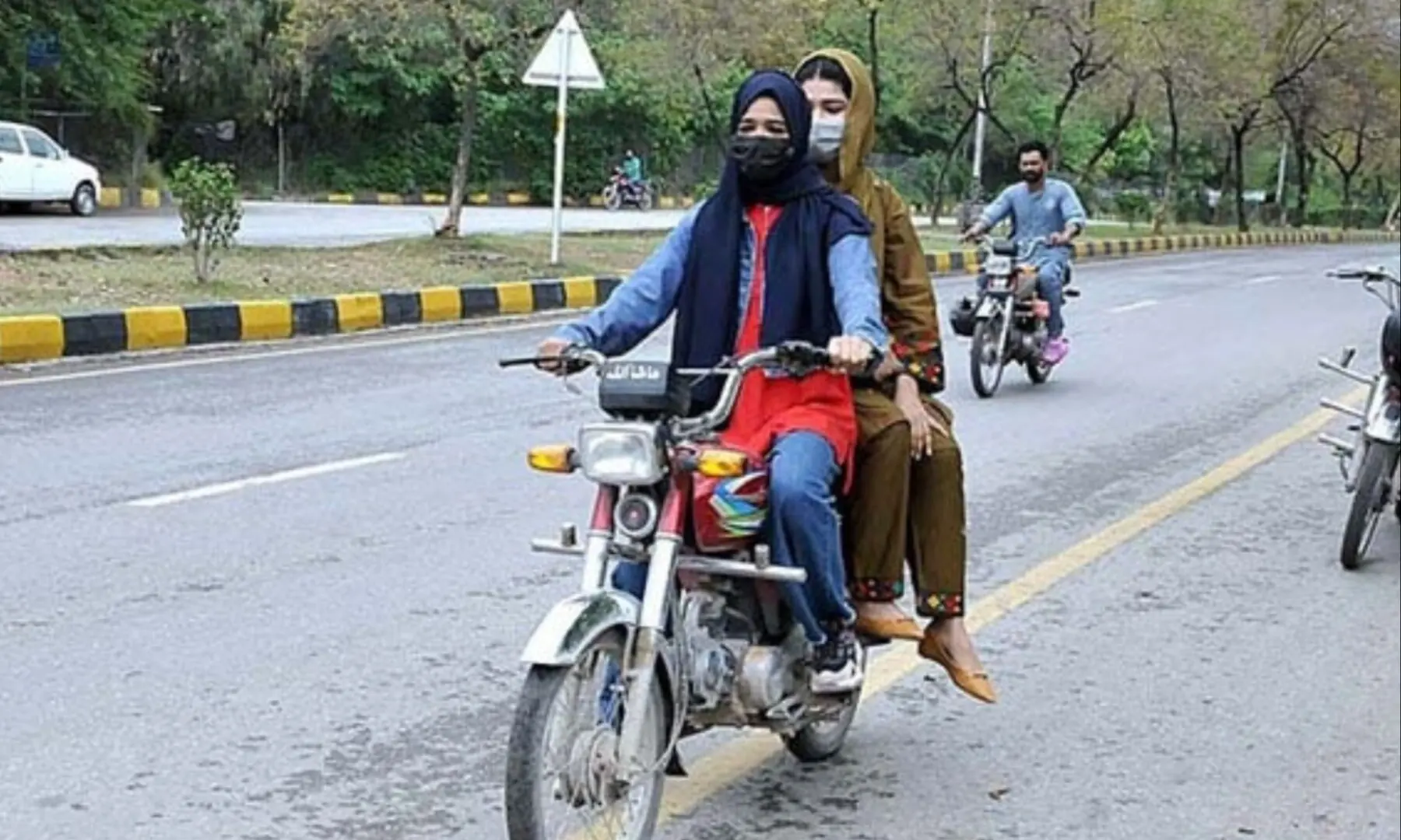 Women riding a motorcycle on the streets of Islamabad in this undated photo. — APP/ File